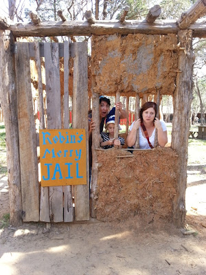 Also it was fun to go to pretend-jail. Here are Salima and Bethany. They are lucky we let them out.
